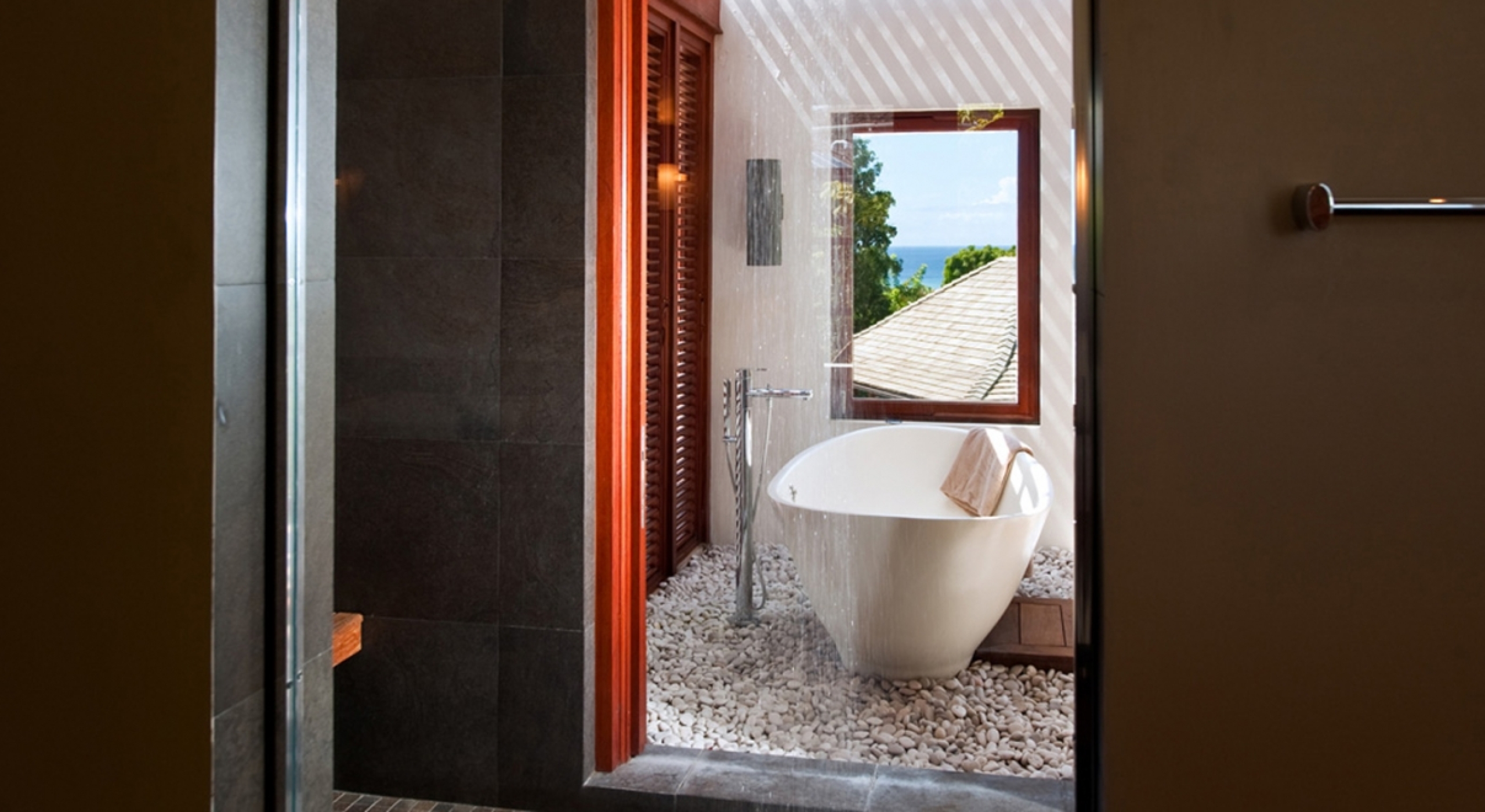 The scene is set from the moment you enter this private escape. The steady hum of the shak-shak trees blowing in the wind, the trickling of the bowl-shaped outdoor fountain and the calming effect of the sweetly scented, lush Caribbean flora provide the perfect frame to Alila’s Zen-like Balinese interior.