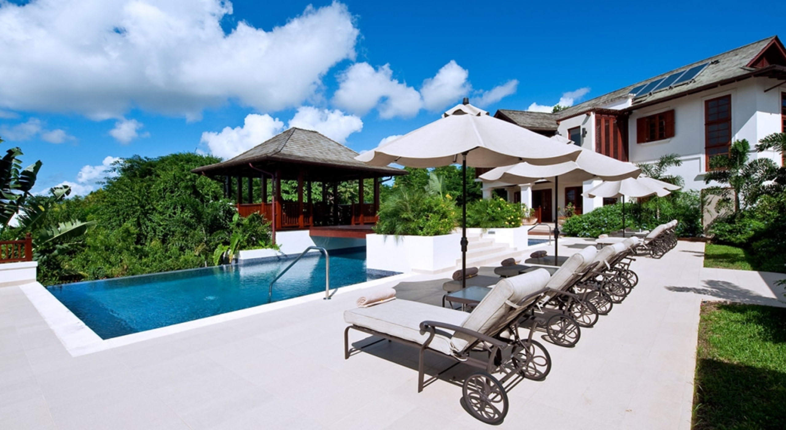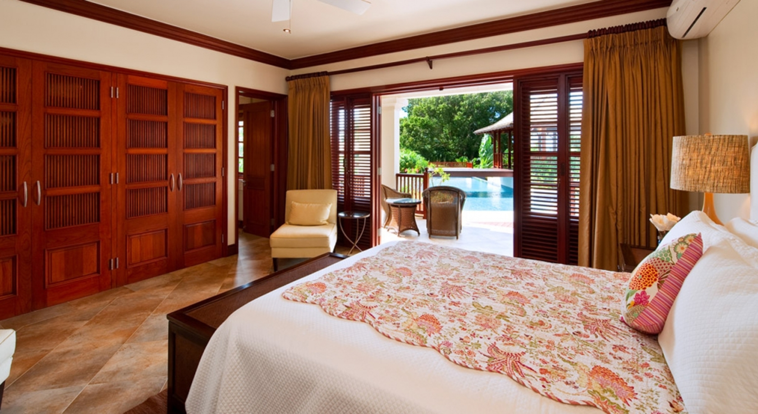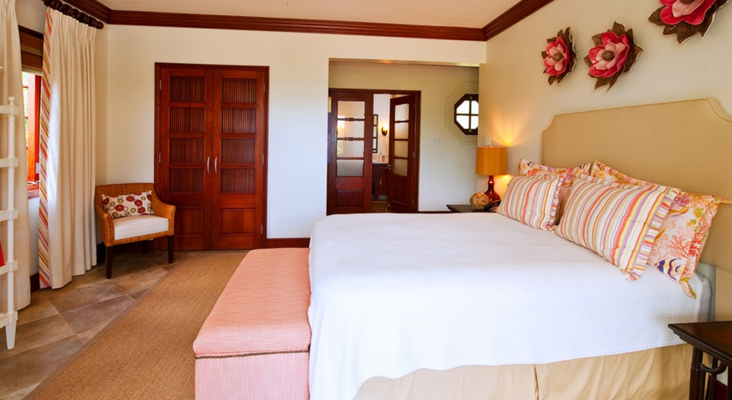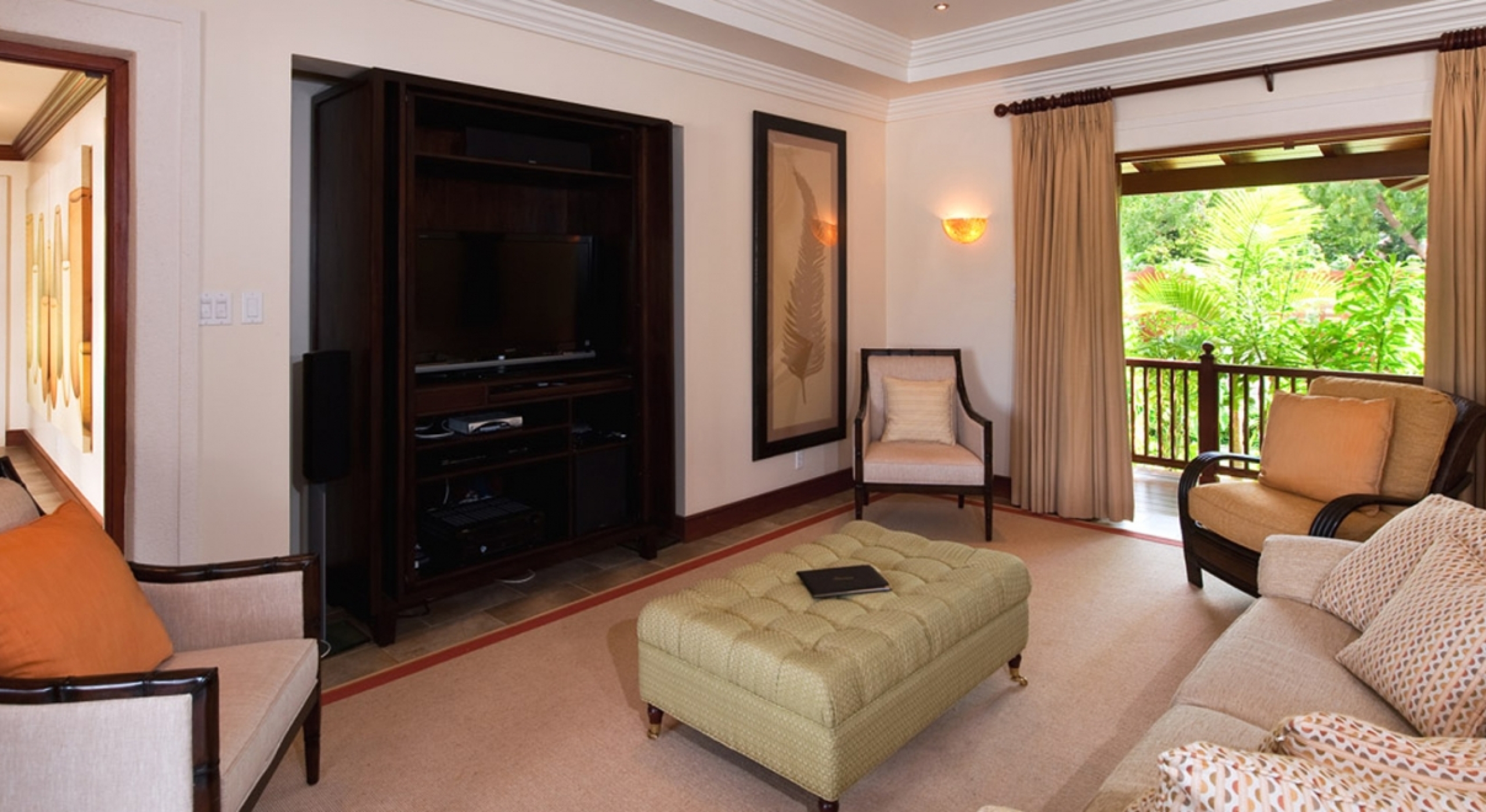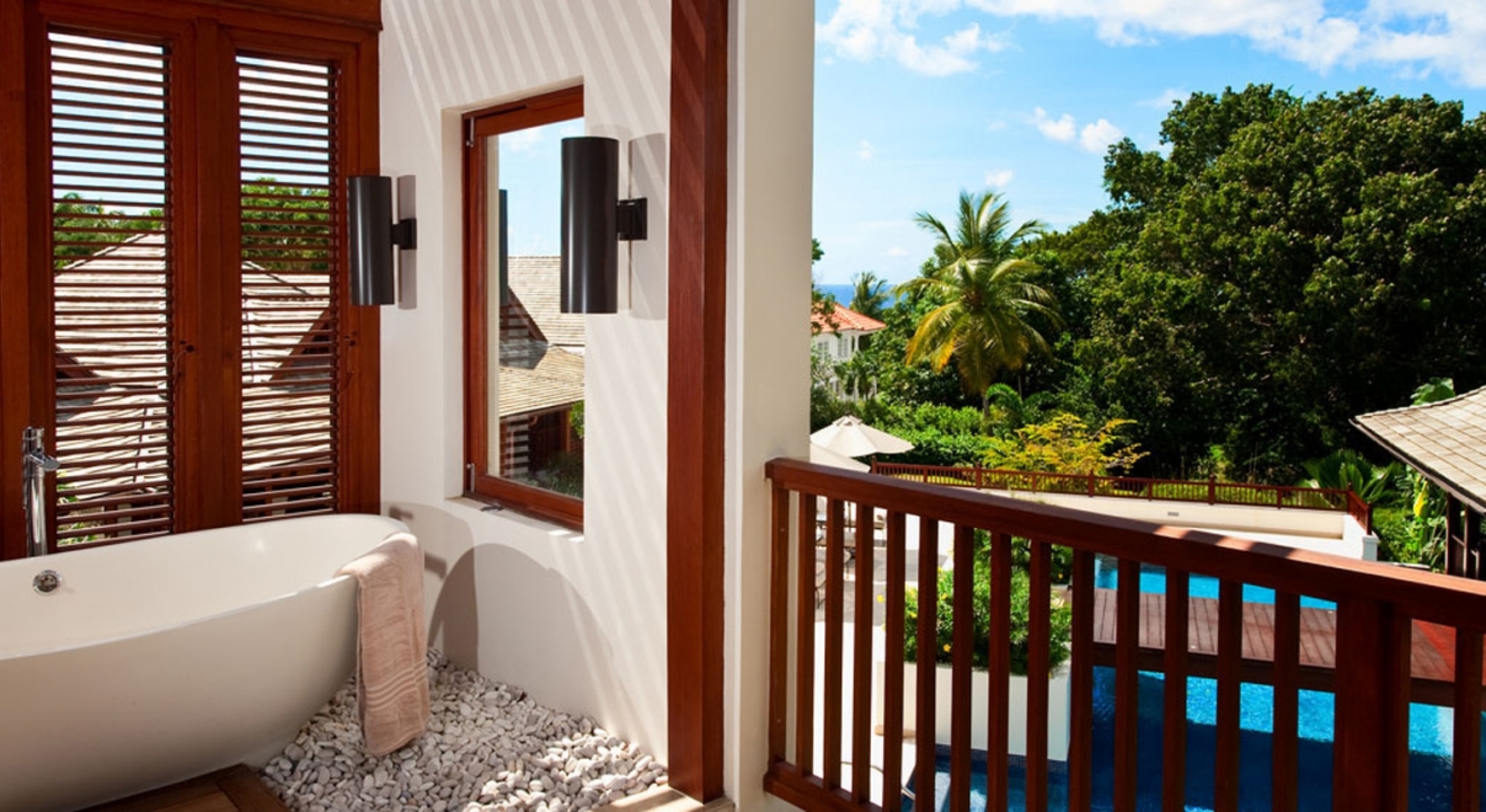 The entire upper level is dedicated to the sprawling master suite which includes his and hers dressing room, double vanity washbasins, a rain shower wet room and a vintage private outdoor freestanding tub. Lounge on the master terrace while enjoying the stunning vista of the Caribbean Sea in the distance.